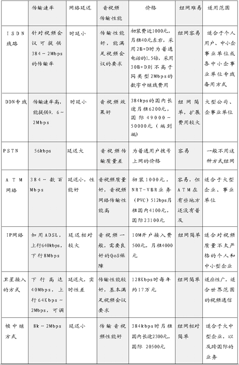 對于普通的個(gè)人用戶,如果想嘗試一下視頻會(huì)議的感受可以試一試PSTN接入。PSTN公共電話網(wǎng)是目前使用最廣泛的網(wǎng)絡(luò)系統(tǒng),它的優(yōu)點(diǎn)是覆蓋區(qū)域廣、易于使用、價(jià)格較低,聯(lián)網(wǎng)容易。但網(wǎng)絡(luò)速度僅能提供到56kbps,線路質(zhì)量較差,傳輸速率較低。對于視頻會(huì)議的聲音圖像傳輸遠(yuǎn)遠(yuǎn)不夠,基于軟件的視頻會(huì)議系統(tǒng)能達(dá)到4f/s的圖像傳輸速率,其最大的缺點(diǎn)是圖像質(zhì)量太差,會(huì)大大影響會(huì)議的質(zhì)量,一般用得很少。