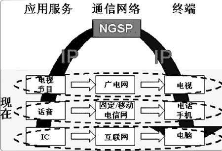 完全融合方式 完全融合的典型技術(shù)解決方案是目前業(yè)界普遍關(guān)注的焦點(diǎn)—NGN(下一代網(wǎng)絡(luò))。NGN的核心思路是重新生產(chǎn)和建立符合標(biāo)準(zhǔn)的服務(wù)、網(wǎng)絡(luò)和終端,徹底取代原有相對(duì)獨(dú)立的應(yīng)用服務(wù)、通信網(wǎng)絡(luò)和終端。由于技術(shù)標(biāo)準(zhǔn)制定復(fù)雜,網(wǎng)絡(luò)設(shè)備投資巨大,實(shí)施周期過(guò)長(zhǎng)等因素,實(shí)現(xiàn)起來(lái)困難較大。