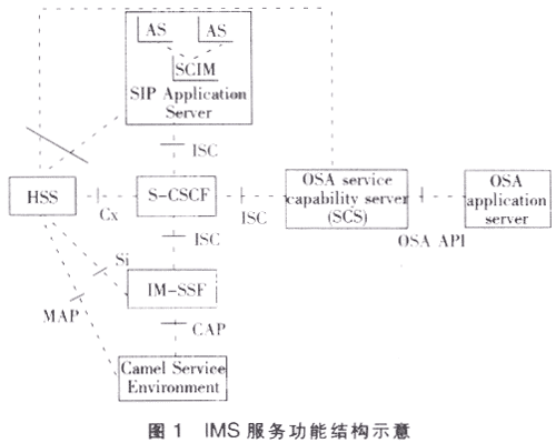 IMS業(yè)務(wù)架構(gòu)由S—CSCF以及各種應(yīng)用服務(wù)器組成。它跟當前的開放性業(yè)務(wù)結(jié)構(gòu)是一致的,都是3層結(jié)構(gòu):最上層是應(yīng)用服務(wù)器(AS);第二層是業(yè)務(wù)能力服務(wù)器(SCS);第三層是S—CSCF。