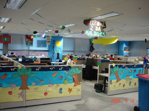 由于這種獨特的管理方式吸引了眾多的同行前來參觀,該中心特別安排了熱情的Sally負責(zé)導(dǎo)游。Sally帶我們參觀說的第一句話就是:“我真是喜愛我們的呼叫中心,這里的年輕人富有創(chuàng)意,充滿激情,他們非常喜歡在這里工作!庇谑俏覀儏⒂^了“蜘蛛俠”,“蒙娜麗莎”,“大英帝國”,“典雅餐廳”,“熱帶公園”,“幾何世界”,“海底世界”,“白色圣誕節(jié)”等不同的Pod,實在是好像到了聯(lián)合國。
