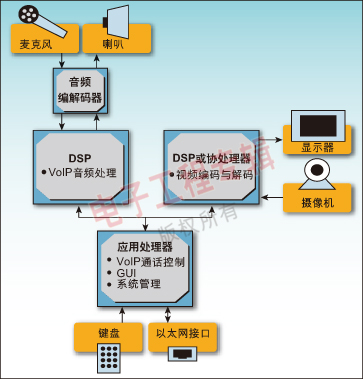 當(dāng)今應(yīng)用處理器的處理能力的增加使得我們能使用先進(jìn)的操作系統(tǒng)環(huán)境,例如嵌入式Linux來有效地將V2IP系統(tǒng)中需要的控制和媒體處理進(jìn)行劃分。這反過來又使得使用單一處理器和工具鏈的軟件開發(fā)更加簡(jiǎn)單,由于減少了一個(gè)或更多的昂貴DSP而降低了成本。