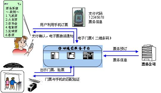 何謂手機(jī)條碼?手機(jī)條碼是以手機(jī)短信的方式將條碼發(fā)送到手機(jī)上并顯示在手機(jī)液晶屏幕上的條碼新形式。這是一種快速便捷的以確認(rèn)使用者身份為目的的無紙化掃描新形式,通過條碼閱讀設(shè)備對(duì)手機(jī)條碼的閱讀來獲取相應(yīng)的信息,從而方便的確認(rèn)使用者的身份。它可以被廣泛應(yīng)用于網(wǎng)絡(luò)購(gòu)物、電子票據(jù)、會(huì)員卡、電子支付等領(lǐng)域,為這些領(lǐng)域健康快速的成長(zhǎng)和發(fā)展提供了新的推進(jìn)作用。鑒于信息量在此類應(yīng)用中有比較大的需求,故現(xiàn)在此項(xiàng)目中用的是二維條碼,且以QR,DataMatrix居多。項(xiàng)目實(shí)施過程中涉及到的硬件設(shè)備包括手機(jī)(需要支持WAP服務(wù))和手機(jī)條碼閱讀器。手機(jī)通過訪問移動(dòng)通訊平臺(tái),獲取電子門票信息,同時(shí)移動(dòng)通訊平臺(tái)根據(jù)手機(jī)驗(yàn)證信息反饋給手機(jī)一個(gè)電子二維條碼。當(dāng)觀眾觀看電影時(shí),在檢票處出示手機(jī)上的二維條碼,系統(tǒng)通過條碼閱讀器識(shí)讀條碼信息并對(duì)信息進(jìn)行驗(yàn)證,驗(yàn)證通過后系統(tǒng)將從手機(jī)賬戶上自動(dòng)扣取相關(guān)費(fèi)用。利用手機(jī)條碼實(shí)現(xiàn)對(duì)大型活動(dòng)門票的管理,將使票務(wù)系統(tǒng)得到安全保障,同時(shí)也會(huì)提高極大的提高票務(wù)管理工作的效率,降低票務(wù)成本,提升客戶服務(wù)質(zhì)量。