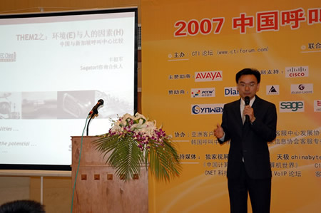2007年4月18日至20日,2007中國呼叫中心及企業(yè)通信大會(huì)在上海光大會(huì)展中心國際大酒店隆重召開,以下是專題演講實(shí)錄:主持人(李京成):各位早上好,大會(huì)的第三天了,時(shí)間像飛一樣的快,今天很多朋友都帶著行李來的,結(jié)束就準(zhǔn)備回家了。今天仍然有兩個(gè)分論壇在這個(gè)分論壇主題是呼叫中心在海外,另外一個(gè)分論壇在十號(hào)廳,都有非常優(yōu)秀的專家給大家提供精彩的演講。今天我們第一位給大家演講的大家并不陌生,我們的老朋友豐祖軍先生,有請(qǐng)豐祖軍先生。豐祖軍先生是在國內(nèi)是一個(gè)非常資深的呼叫中心運(yùn)營管理專家,我們經(jīng)常在一起合作。在此他演講之前,要做好思想準(zhǔn)備跟上他的跳躍思維,不然會(huì)落后,他的思維非常快,表達(dá)也非?,他演講的題目是環(huán)境與人的因素-中國與新加坡呼叫中心的比較,下面把時(shí)間交給豐祖軍先生。