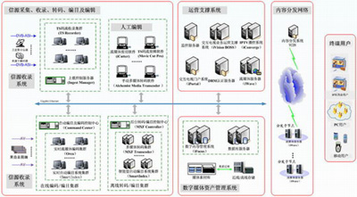 100路衛(wèi)星電視節(jié)目自動(dòng)收錄及編目,經(jīng)由流媒體節(jié)目剪輯、拆條;然后通過CDN提供ISOMPEG4(IPSetTop Box接收) 和Windows