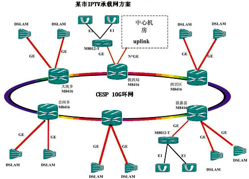 隨著IPTV業(yè)務(wù)的迅速發(fā)展,IPTV承載網(wǎng)建設(shè)顯得尤其重要。IPTV承載的最主要內(nèi)容包括VOD(視頻點(diǎn)播)及直播電視頻道節(jié)目。為保證IPTV的收看質(zhì)量與目前的有線電視網(wǎng)收看質(zhì)量相當(dāng),IPTV承載網(wǎng)必須要在網(wǎng)絡(luò)帶寬、網(wǎng)絡(luò)可靠性、頻道切換時(shí)延、網(wǎng)絡(luò)QoS等方面提供保證。