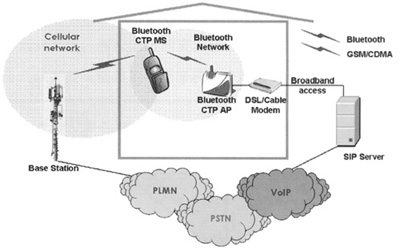 摘要 介紹了藍牙CTP(Cordless Telephony Profile)應用模型,并闡述它在FMC(Fixed Mobile Convergence)接入網(wǎng)中的應用:PSTN接入和VoIP接入。
