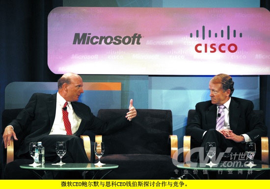 由于在軟件領(lǐng)域的獨(dú)特優(yōu)勢(shì),微軟借統(tǒng)一通信進(jìn)入了通信市場(chǎng); 也是由于統(tǒng)一通信的獨(dú)特魅力,使得思科不得不向軟件轉(zhuǎn)型。據(jù)記者所知,就在4年前,蓋茨和錢(qián)伯斯曾在不同場(chǎng)合提到,他們兩家公司除了彼此尊敬之外,不可能進(jìn)入彼此所從事的完全不同的領(lǐng)域。但是俗語(yǔ)說(shuō)得好,沒(méi)有永遠(yuǎn)的朋友,只有永遠(yuǎn)的利益。在面對(duì)統(tǒng)一通信這個(gè)日趨龐大的市場(chǎng)時(shí),競(jìng)爭(zhēng)似乎是不可避免的。