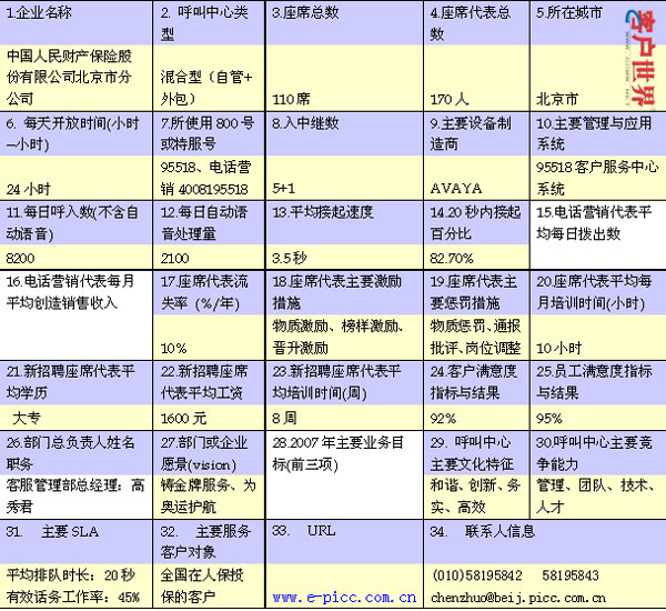 經(jīng)過(guò)幾年的發(fā)展,目前北京市分公司95518呼叫中心建成了110個(gè)座席規(guī)模的大型呼叫中心,打造了一支由170名高素質(zhì)客戶服務(wù)代表組成的人保財(cái)險(xiǎn)系統(tǒng)最大的呼叫中心隊(duì)伍,日均受理電話量高達(dá)7000通。呼叫中心的發(fā)展為公司服務(wù)升級(jí)和業(yè)務(wù)發(fā)展提供了有力保障和支撐。