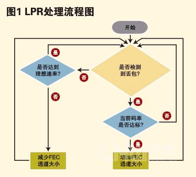 不同于大多數(shù)差錯(cuò)隱消或規(guī)避算法只介入接收丟包信息系統(tǒng)的方式,LPR會介入到視頻通話中的各級系統(tǒng)中,通過臨時(shí)將一部分通話帶寬分配給一個(gè)數(shù)據(jù)通道,從而用于發(fā)送FEC數(shù)據(jù)給接收系統(tǒng)來發(fā)揮作用。在網(wǎng)絡(luò)傳輸發(fā)生丟包時(shí),通過上述的一個(gè)循環(huán)處理,LPR就會增加或減少FEC數(shù)據(jù)通道的大小,直到找到必須分配給FEC數(shù)據(jù)通道的最小帶寬,從而使得接收系統(tǒng)能夠恢復(fù)所有丟失的數(shù)據(jù)包。