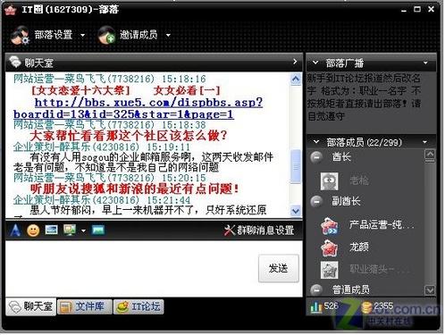 在群聊的過程中兩款軟件都各特色。百度Hi的特色是當(dāng)用戶向群中一個不是自己好友的人發(fā)送信息時,該用戶會在百度網(wǎng)頁短信息中可以收到消息,此項功能十分適合上班時不能打開聊天軟件的朋友使用。Lava則是將群功能體現(xiàn)的更加強大些,除了消息發(fā)送外可以建立屬于群部落的文件庫,就是這個部落的藏寶室,有什么好東東都可以放進去,簡直就是超大的網(wǎng)絡(luò)硬盤。(圖9、圖10)