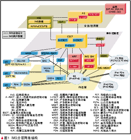 首先,IMS鑒于VoIP的成功應(yīng)用,在承載層摒棄了長期以來在傳統(tǒng)電信網(wǎng)中占主導(dǎo)地位的電路交換(CS)域,采用基于IP技術(shù)的單一的PS域傳輸各種媒體和信令數(shù)據(jù)流,即首次提出在通信網(wǎng)中采用全I(xiàn)P承載網(wǎng)絡(luò),使之成為通信網(wǎng)融合的底層基礎(chǔ)。