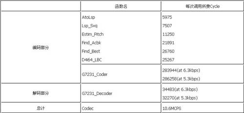 經(jīng)過C語言級和匯編級的多種優(yōu)化,最后實現(xiàn)了一路G.723.1的編解碼需要花費(fèi)10.6MCPS,整個代碼的程序空間為208K byte(程序中包括了部分c6201的庫函數(shù)),數(shù)據(jù)空間為8K byte,碼本大小20k byte,多通道的上下文數(shù)據(jù)為1.48K byte。200MHz的C6201每秒可以實時編解碼16路語音信號。所有代碼全部通過了ITU-T測試矢量的測試。表1是各主要模塊的運(yùn)算量。