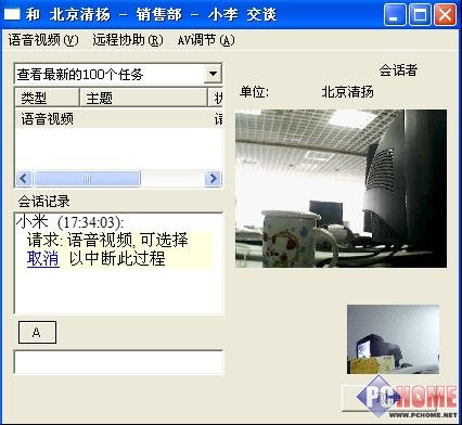 圖:清揚即時通信軟件(網絡版):兩臺電腦的網絡視頻會議