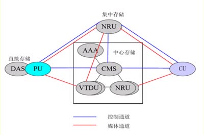 VTDU和NRU采用分布式部署,一個(gè)中心平臺(tái)可包括多臺(tái)VTDU及NRU。為了實(shí)現(xiàn)大容量的PU和CU的接入和管理,PU和CU的接入模塊也可采用分布式部署。