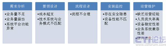 要領(lǐng)設(shè)計階段風(fēng)險:在該階段,企業(yè)將決定呼叫中心的建設(shè)規(guī)模、技術(shù)設(shè)備、組織架構(gòu)及運營模式等一系列環(huán)節(jié)。此過程中,最容易且是最嚴重的風(fēng)險在于成本估算的差異和技術(shù)系統(tǒng)與業(yè)務(wù)模式的不匹配。多數(shù)企業(yè)在呼叫中心建設(shè)成本估算時由于經(jīng)驗的缺乏無法全面預(yù)測建設(shè)成本,特別是對運營費用的把握常常相差數(shù)倍。因此,實際建設(shè)成本過分超出預(yù)算成為困擾項目執(zhí)行者的一大難題。這就使得企業(yè)對呼叫中心的投入猶如一個無底洞,一投再投,嚴重影響了企業(yè)資金鏈的正常運轉(zhuǎn),也為呼叫中心的“成本”角色加重了色彩。此外,很多公司或者系統(tǒng)集成商因為初始投入成本、建設(shè)經(jīng)驗或者運營經(jīng)驗等方面的限制,在呼叫中心建設(shè)初期很重視技術(shù)平臺的建設(shè),但忽視了運營思想在系統(tǒng)方案中的體現(xiàn),在系統(tǒng)建成后,再去完善運營系統(tǒng),這樣極大地增加了呼叫中心的運營和管理成本,也影響到管理效率。