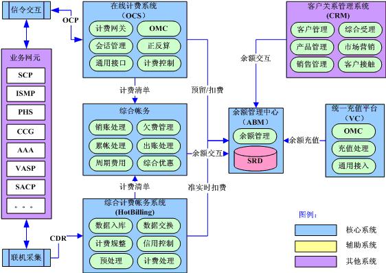在線計費系統(tǒng)通過實時信令交互實現(xiàn)對高風險和高價值業(yè)務(wù)的實時計費;綜合計費帳務(wù)系統(tǒng)通過準實時話單采集實現(xiàn)對后付費用戶的準實時計費;綜合帳務(wù)系統(tǒng)實現(xiàn)全業(yè)務(wù)的綜合優(yōu)惠和帳務(wù)處理;獨立的余額管理中心實現(xiàn)對電信余額的統(tǒng)一管理,未來將成為電信的“內(nèi)部銀行”;統(tǒng)一充值平臺實現(xiàn)全網(wǎng)全業(yè)務(wù)的統(tǒng)一充值支付。