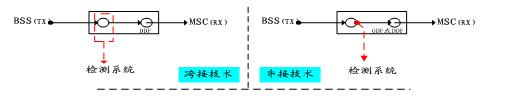 目前在GSM網信令檢測領域,主要應用的措施有跨接技術、串接技術兩種。其圖示如下: