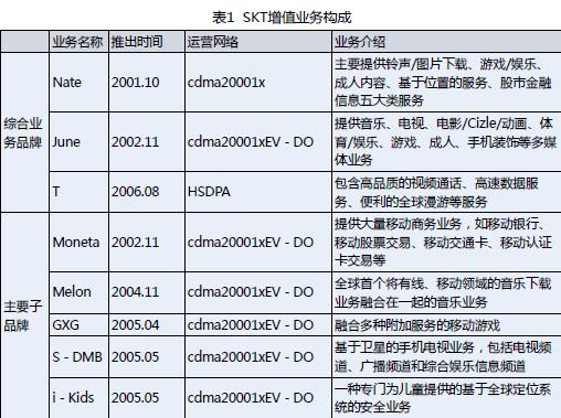 SKT的增值業(yè)務主要由三大綜合業(yè)務品牌和若干子品牌構(gòu)成(見表1),其中娛樂類業(yè)務受到多數(shù)人的喜愛,比如Nate、melon、GXG等。