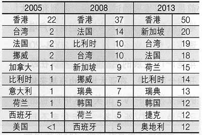 香港的IPTV滲透率始終保持首位,主要?dú)w功于作為市場(chǎng)領(lǐng)軍人物的香港電訊盈科大規(guī)模的業(yè)務(wù)開展見(jiàn)表3。香港電訊盈科在充分利用有線電視運(yùn)營(yíng)商香港有線寬頻面對(duì)市場(chǎng)做出反應(yīng)較慢的同時(shí),通過(guò)為用戶提供按月任意選擇頻道服務(wù)實(shí)現(xiàn)了快速的市場(chǎng)占有。香港電訊盈科目前鼓勵(lì)用戶對(duì)服務(wù)包進(jìn)行長(zhǎng)期投資以增加收入,同時(shí)減少季節(jié)性收入(例如,每當(dāng)歐洲足球季結(jié)束時(shí)營(yíng)業(yè)額出現(xiàn)下滑)。目前 有超過(guò)三分之一的香港電視家庭接收IPTV信號(hào)。盡管增長(zhǎng)有所減慢,仍舊有一半的香港電視家庭到2013年將接收IPTV。香港將與排名其后的國(guó)家始終保持較大的差距。到2013年,新加坡的IPTV滲透率將排名第二,為20%。新加坡市場(chǎng)與香港有著相似之處,主要是由于新加坡電信公司與有線電視運(yùn)營(yíng)商StarHub Cable Vision之間的競(jìng)爭(zhēng)。臺(tái)灣將位居新加坡之后,滲透率為19%。法國(guó)則憑借18%的滲透率位居第三,荷蘭和比利時(shí)排名其后。荷蘭和比利時(shí)均是有線電視覆蓋較廣的國(guó)家,但是IPTV運(yùn)營(yíng)商卻通過(guò)有足夠吸引力的服務(wù)包贏得了用戶。到2013年,有12個(gè)國(guó)家的IPTV滲透率將超過(guò)l0%,l4個(gè)國(guó)家的滲透率僅為2%或更低。拉丁美洲的滲透率較低主要?dú)w結(jié)于IPTV在該地區(qū)大部分開始較晚。