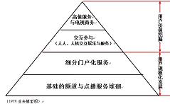 擁有4億多注冊(cè)用戶的騰訊,占有中國(guó)即時(shí)通信80%的市場(chǎng)份額,互聯(lián)網(wǎng)行業(yè)贏家通吃的定律顯露無(wú)疑,騰訊在海量用戶群基礎(chǔ)上開(kāi)發(fā)的各種業(yè)務(wù)都在行業(yè)排名前列。當(dāng)電視服務(wù)的規(guī)模用戶群得以穩(wěn)固,基于用戶規(guī)模之上的多元化服務(wù)集成成為可能,對(duì)電視服務(wù)形成高度依賴的用戶群具備了價(jià)值挖掘的條件。人人交互、人機(jī)交互依托基礎(chǔ)的電視分眾門戶化應(yīng)用,形成了最初的用戶使用習(xí)慣;依托電視分眾門戶化集成的積累,建立用戶識(shí)別、用戶分析、收視分析、用戶數(shù)據(jù)交換的技術(shù)體系,用以支撐未來(lái)多元化娛樂(lè)與服務(wù)的開(kāi)發(fā)。基于IPTV的交互能力,依托電視終端的易用性與舒適性,用戶價(jià)值、終端價(jià)值被充分挖掘,電視服務(wù)開(kāi)始對(duì)其他媒介形式(含互聯(lián)網(wǎng))的用戶形成吸納。圍繞交互、商務(wù)需求的電子貨幣體系逐漸完善,電視進(jìn)入可有效運(yùn)營(yíng)、可便捷支付的良性的產(chǎn)業(yè)循環(huán),IPTV多元化業(yè)務(wù)之門打開(kāi)。