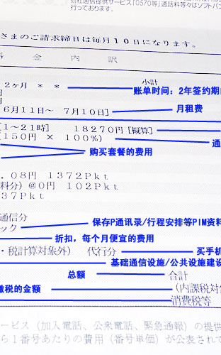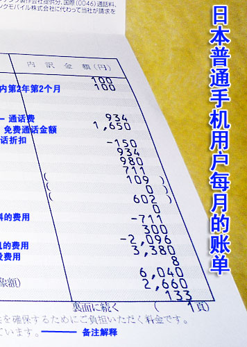 到底在購買各種套餐之后,用戶每個月使用多少錢呢?下面是一份普通的日本手機(jī)用戶每個月收到的賬單,通過這份賬單我們清晰看出3G資費的構(gòu)成。在這里,我們清晰看到?jīng)]有漫游費,如果沒有折扣,該用戶至少需要付近3萬日元的費用,實際上,最后用戶需要繳納的費用是6064日元,其中還包含了購買新款手機(jī)3380日元的費用,實際上產(chǎn)生的話費是2660日元。