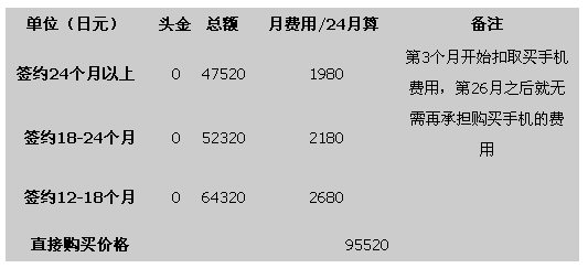 我們都知道日本的購買手機(jī)最主要是和運營商簽約購買,我們以夏普2009年夏季最新款手機(jī)Soft Bank 933SH為例,來說明一下在日本購買手機(jī)的成本?偟膩碚f,就是簽約時間越長,購買手機(jī)價格越低,簽約時間越短,購買價格越高。