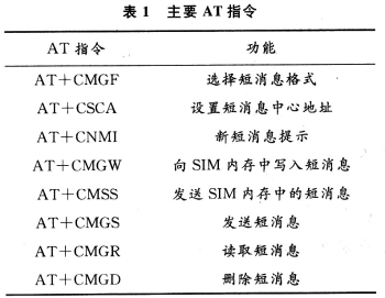 AT即Attention,AT指令集是從終端設(shè)備(Ter-minal Equipment,TE)或數(shù)據(jù)終端設(shè)備(Data Terminal Equipment,DTE)向終端適配器(Terminal Adapter, TA)或數(shù)據(jù)電路終端設(shè)備(Data Circuit Terminal E-quipment,DCE)發(fā)送的。通過TA,TE發(fā)送AT指令來控制移動(dòng)臺(tái)(Mobile Station,MS)的功能,與GSM網(wǎng)絡(luò)業(yè)務(wù)進(jìn)行交互。用戶可以通過AT指令進(jìn)行呼叫、短信、電話本、數(shù)據(jù)業(yè)務(wù)、傳真等方面的控制。主要AT指令如表1所示。