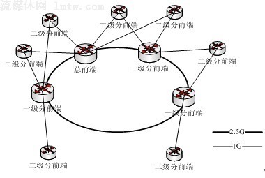 某廣電現(xiàn)有網絡環(huán)境如下圖所示,總前端及其他一級分前端處于骨干光纖環(huán)網上,另有若干個二級分前端分別通過光纖雙上聯(lián)至骨干環(huán)網上的總前端或一級分前端中的兩個物理節(jié)點。所有物理節(jié)點均帶有一定數(shù)量的終端用戶。