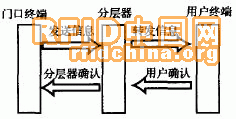 由門(mén)口終端發(fā)送一幀信息給分層器,分層器接收到以后,被呼叫的分層器將信息分發(fā)給本層所有的用戶終端,并等待用戶終端的確認(rèn)。被呼叫的用戶終端收到信息后,立即發(fā)送確認(rèn)信息給分層器,分層器收到以后,給門(mén)口終端發(fā)送確認(rèn)信息。門(mén)口終端收到分層器的確認(rèn)后,打開(kāi)攝像頭和音頻麥克風(fēng),此時(shí)雙方可以進(jìn)行對(duì)話。