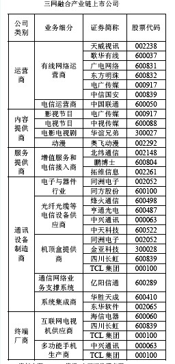 這意味著電信網(wǎng)、廣播電視網(wǎng)和互聯(lián)網(wǎng)實(shí)現(xiàn)三網(wǎng)互聯(lián)互通、資源共享的概念,在中國(guó)正在變成一場(chǎng)多媒體通訊實(shí)踐;也意味著通信信息領(lǐng)域?qū)⒂瓉?lái)一個(gè)閃耀的投資亮點(diǎn),通訊設(shè)備商、電信運(yùn)營(yíng)商、有線運(yùn)營(yíng)商和內(nèi)容提供商等將直接受益。
