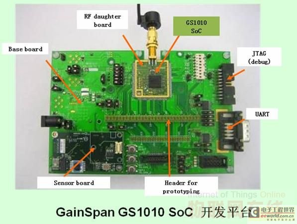 為了幫助客戶縮短開發(fā)周期, GainSpan還提供了一整套包括SDK、評估平臺、開發(fā)平臺在內(nèi)的軟硬件工具。其軟件棧包括了各種I/O驅(qū)動和WLAN固件、RTOS、網(wǎng)絡棧、系統(tǒng)服務、WLAN和I/O服務模塊、各種應用編程接口以及應用軟件。Parmar聲稱,GS1010的SDK能夠幫助工程師節(jié)約10~12個月的開發(fā)時間。而硬件開發(fā)平臺則能夠支持溫度、濕度、光敏、壓力、加速度等各種傳感器,并預留了客戶自選的傳感器接口和調(diào)試以及程序燒錄接口。