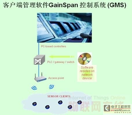 除了芯片本身之外,客戶端管理軟件GMS控制系統(tǒng)也在發(fā)揮Wi-Fi的優(yōu)勢中起到了很大作用。實時的界面幫助系統(tǒng)控制和采用單跳網(wǎng)絡來管理節(jié)點可以最大化增加客戶端設備電池的續(xù)航時間。而支持SNMP、UDP等標準的網(wǎng)絡協(xié)議則使得Wi-Fi WSN能與工業(yè)控制、樓宇自動化、企業(yè)網(wǎng)絡管理系統(tǒng)等已有的網(wǎng)絡系統(tǒng)兼容。該軟件還可有效的配置、控制、監(jiān)控傳感器節(jié)點,實現(xiàn)智能集中控制和管理,并支持固件升級。此外,智能化的數(shù)據(jù)處理能力還可集中管理、預處理和歸納傳感器收集到的數(shù)據(jù)。