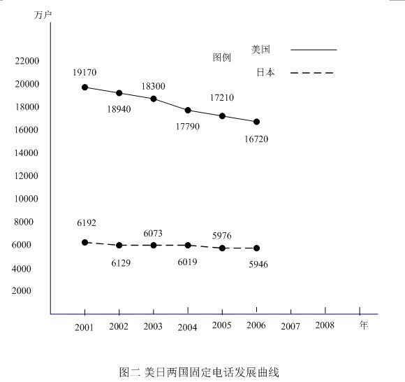 固定電話受沖擊的程度在電信界美國比日本更加突出,這是因為美國大的通信公司,除了提供電話、電視和高速上網捆綁服務外,基本上不提供IP電話(普通電話機要經本地市話交換機再通過網關進入因特網)和VoIP電話(普通電話機經TA到因特網)。據(jù)今日美國報報導,全國衛(wèi)生統(tǒng)計中心(National Centerfor Health Statistics)最近公布的數(shù)據(jù)顯示,2007年下半年,美國全國每6個家庭中,就有1家只有移動電話,而沒有固定電話,已占到15.8%,這一比例在2004年同期只有6.1%。調查還發(fā)現(xiàn):