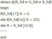 用以實(shí)現(xiàn)G、B的代碼與上面類(lèi)似,在此不再贅述。以下代碼實(shí)現(xiàn)R_full*1/256功能。