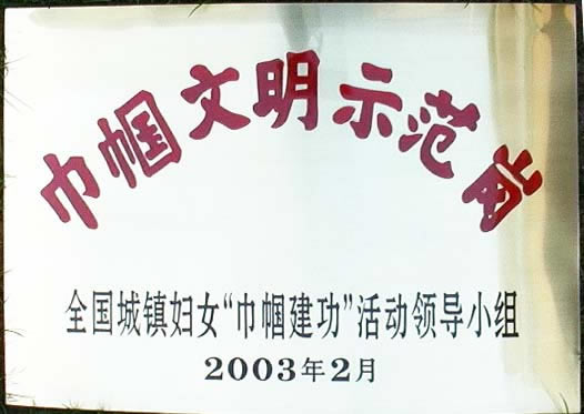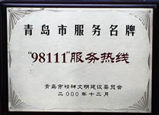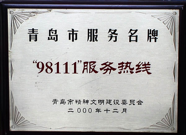 “科學(xué)技術(shù)進步二等獎” 、“巾幗文明示范崗”、“經(jīng)濟技術(shù)創(chuàng)新工程創(chuàng)新示范崗”、“2002年度青島市文明單位”、 “公民道德建設(shè)示范點”、“青島市創(chuàng)建國家節(jié)水型城市突出貢獻單位。