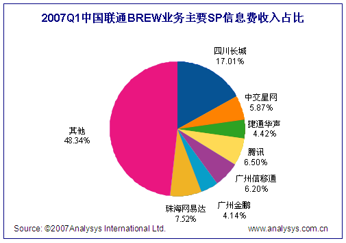 2007年第1季度中國聯(lián)通BREW市場整體規(guī)模達0.51億人民幣