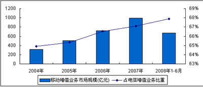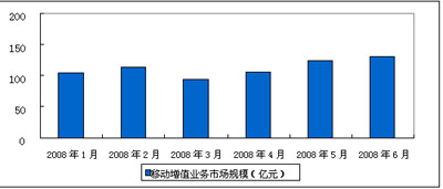 圖1 2008年1-6月中國移動通信增值業(yè)務(wù)市場規(guī)模