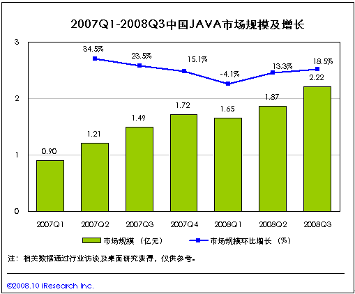 艾瑞咨詢研究發(fā)現(xiàn),2008年第三季度JAVA市場規(guī)模為2.22億,同比增長48.2%.在奧運(yùn)影響移動(dòng)增值市場規(guī)模整體升溫的環(huán)境下,中國移動(dòng)自9月1日進(jìn)一步屏蔽超過數(shù)量限制的單機(jī)游戲。