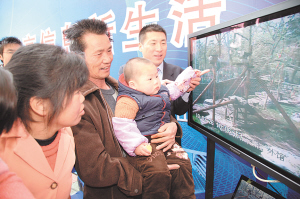 圖:孩子通過電信全球眼,看到了動(dòng)物園里的熊貓寶寶。