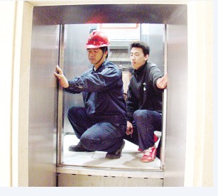 電梯從15樓降下,忽然一震,停住了。記者感覺有些緊張,同在電梯中的技術(shù)人員告訴記者,這是電梯在故障下的保護(hù)狀態(tài)。