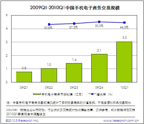 根據(jù)艾瑞咨詢(xún)即將發(fā)布的2010年第一季度中國(guó)移動(dòng)互聯(lián)網(wǎng)市場(chǎng)數(shù)據(jù)顯示,2010Q1中國(guó)移動(dòng)互聯(lián)網(wǎng)市場(chǎng)整體交易規(guī)模達(dá)到44.9億,環(huán)比增長(zhǎng)5.2%。艾瑞咨詢(xún)分析認(rèn)為,盡管電信運(yùn)營(yíng)商計(jì)費(fèi)政策調(diào)整,對(duì)移動(dòng)增值市場(chǎng)收入產(chǎn)生負(fù)面影響,但是手機(jī)電子商務(wù)、手機(jī)搜索等業(yè)務(wù)領(lǐng)域的良好市場(chǎng)表現(xiàn),推動(dòng)移動(dòng)互聯(lián)網(wǎng)市場(chǎng)規(guī)模平穩(wěn)增長(zhǎng)。