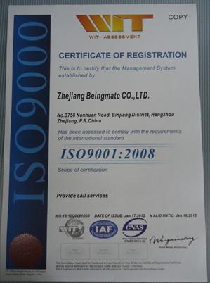 浙江貝因美科工貿(mào)股份有限公司呼叫中心于2012年1月17日通過ISO9001:2008質(zhì)量管理體系認(rèn)證,并獲得中國(guó)CNAS和美國(guó)ANAB認(rèn)可的證書。這標(biāo)志著,貝因美呼叫中心成為國(guó)內(nèi)嬰童業(yè)界少數(shù)通過ISO9001國(guó)際質(zhì)量管理體系的審核、并獲得ISO9001:2008質(zhì)量管理體系認(rèn)證證書的客戶服務(wù)中心之一。
