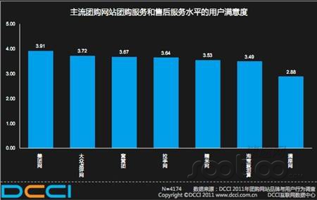 8月10日消息 根據(jù)數(shù)據(jù)機構(gòu)DCCI近日發(fā)布的“2011上半年中國網(wǎng)絡(luò)團購用戶調(diào)查報告”,美團網(wǎng)在“團購服務(wù)和售后服務(wù)水平的用戶滿意度”上位居榜首,大眾點評網(wǎng)、窩窩團、拉手網(wǎng)、滿座網(wǎng)等團購網(wǎng)站緊隨其后。
