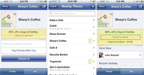 正如Foursquare一樣,用戶利用Facebook Places“簽到”就能夠享受當?shù)氐膬?yōu)惠交易。