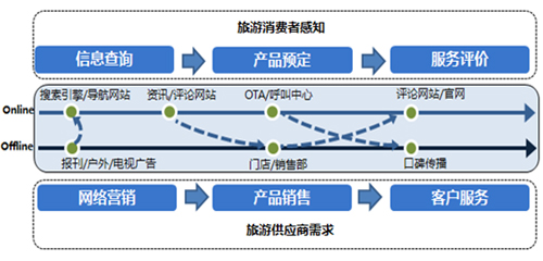 從旅游供應(yīng)商的維度出發(fā),缺失的兩個(gè)環(huán)節(jié)往往對(duì)其訂單生成有決定性意義。一方面是在網(wǎng)民獲取旅游信息的環(huán)節(jié)借助互聯(lián)網(wǎng)展示及搜索廣告進(jìn)行品牌曝光及活動(dòng)營(yíng)銷,提升企業(yè)的品牌知名度及銷售轉(zhuǎn)化率。另一方面是在網(wǎng)民針對(duì)旅游服務(wù)進(jìn)行評(píng)價(jià)及分享的環(huán)節(jié)及時(shí)解答服務(wù)疑問引導(dǎo)評(píng)論主題,通過口碑因素提高老用戶APRU值并帶來新用戶。