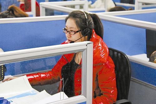 趙曉薇(化名)是拉手網(wǎng)北京客服部的一名工作人員,每天早上8:30,她會(huì)準(zhǔn)時(shí)戴上耳麥,開(kāi)始一天忙碌的工作!疤孛,電話多的時(shí)候,一天得有300個(gè)來(lái)電!睍赞笔且粋(gè)語(yǔ)氣平和,聲音甜美,笑容溫和的女孩子。正說(shuō)著,她就趕緊接通了正在鈴鈴作響的電話,開(kāi)始熱情、耐心地為用戶釋疑解困。