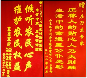 專家們辛勤耕耘贏得了農(nóng)民的認(rèn)可,千里迢迢送去了錦旗和感謝信,并在2010年12316專家評選活動中,冒著大雪趕去為他們的貼心人投上了自己寶貴的一票。