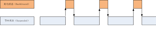 為了節(jié)約電池的電量,智能手機(jī)上的操作系統(tǒng)的一個(gè)基本策略是,盡量減少正在運(yùn)行的程序,這個(gè)道理很簡單,運(yùn)行的程序越多,需要耗費(fèi)的 CPU 計(jì)算時(shí)間就越多,電量就省不下來。下面的圖是蘋果 iOS 設(shè)備應(yīng)用程序調(diào)度狀態(tài)圖,事實(shí)上蘋果設(shè)備是除了用戶正在操作的程序,其他打開的程序進(jìn)程盡可能都放到“掛起(Suspended)”的狀態(tài)下。在“掛起”的狀態(tài)下面,程序進(jìn)程處在休眠狀態(tài),不耗費(fèi) CPU 計(jì)算能力。當(dāng)用戶沒有對設(shè)備進(jìn)行操作的時(shí)候,整個(gè)系統(tǒng)處在休眠的低電狀態(tài)。(這里進(jìn)程的意思是:程序運(yùn)行實(shí)例)