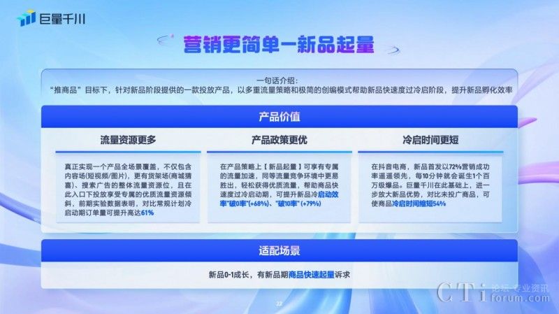 對(duì)于在618好物節(jié)期間想借助流量上行期推新品的商家,「新品起量」助力商家在推商品階段,以多重流量策略和極簡(jiǎn)的創(chuàng)編模式幫助新品快速度過(guò)冷啟階段,提升新品孵化效率,讓營(yíng)銷變得更簡(jiǎn)單。前期實(shí)驗(yàn)數(shù)據(jù)表明,對(duì)比常規(guī)計(jì)劃冷啟動(dòng)期訂單量可提升61%。