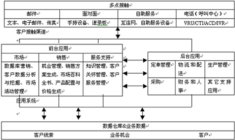 至此,對CRM關(guān)注的焦點應(yīng)落腳于業(yè)務(wù)過程,它是企業(yè)理念、企業(yè)對CRM的受應(yīng)性和現(xiàn)有IT 技術(shù)、管理技術(shù)在應(yīng)用領(lǐng)域的匯合點,也集中體現(xiàn)了CRM軟件的整體性能和廠商的綜合實力。